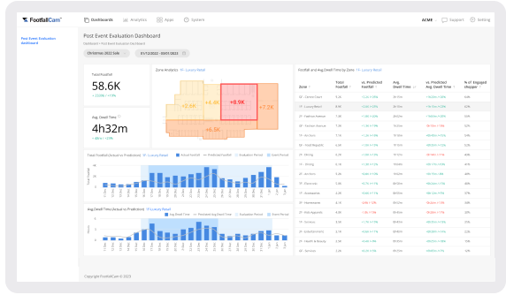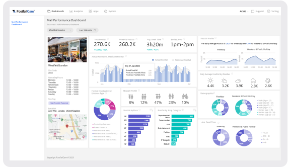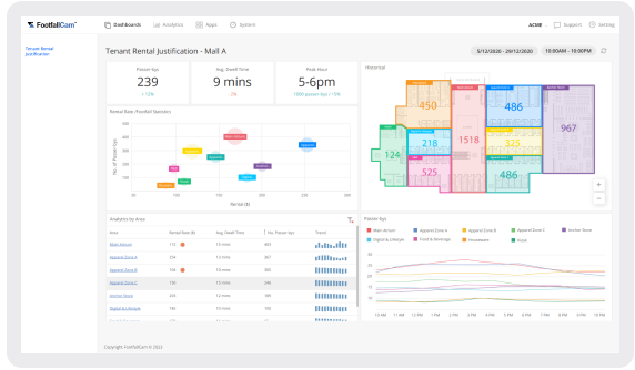 Provide a details profiling on each area and floor which helps the Rental Manager comprehend traffic crowd and flow patterns to optimize tenant placement and justify tenant rental cost. This understanding becomes a valuable tool for optimizing tenant placement, justifying tenant rental costs, and evaluating peak hours. With the ability to track footfall numbers on each floor and area, Rental Managers can make informed decisions regarding lease agreements, enhance overall shopping mall management, and determine prime areas for tenant placement.